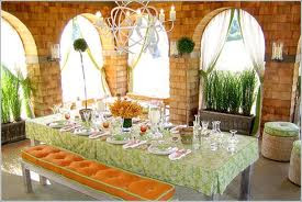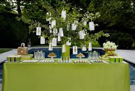 Otra mesa de comunión en fucsia y verde aquí